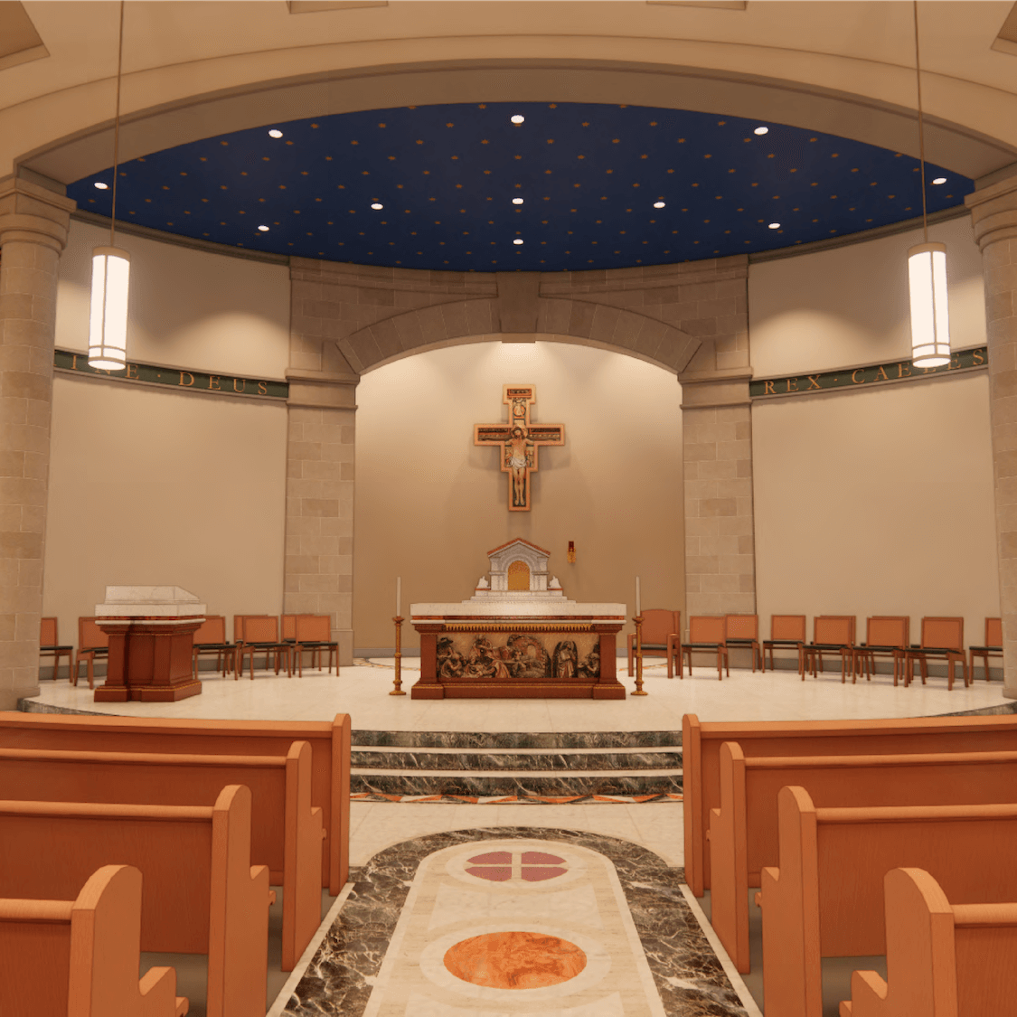 Franciscan University will begin a renovation to expand and beautify Christ the King Chapel in spring 2024. The goal of the renovation is not only to increase the seating capacity from 325 to 500, but to enhance the qualities that have made the chapel a beloved and sacred worship space for the Franciscan community, preserving the intimacy that allows for active and engaged worship.